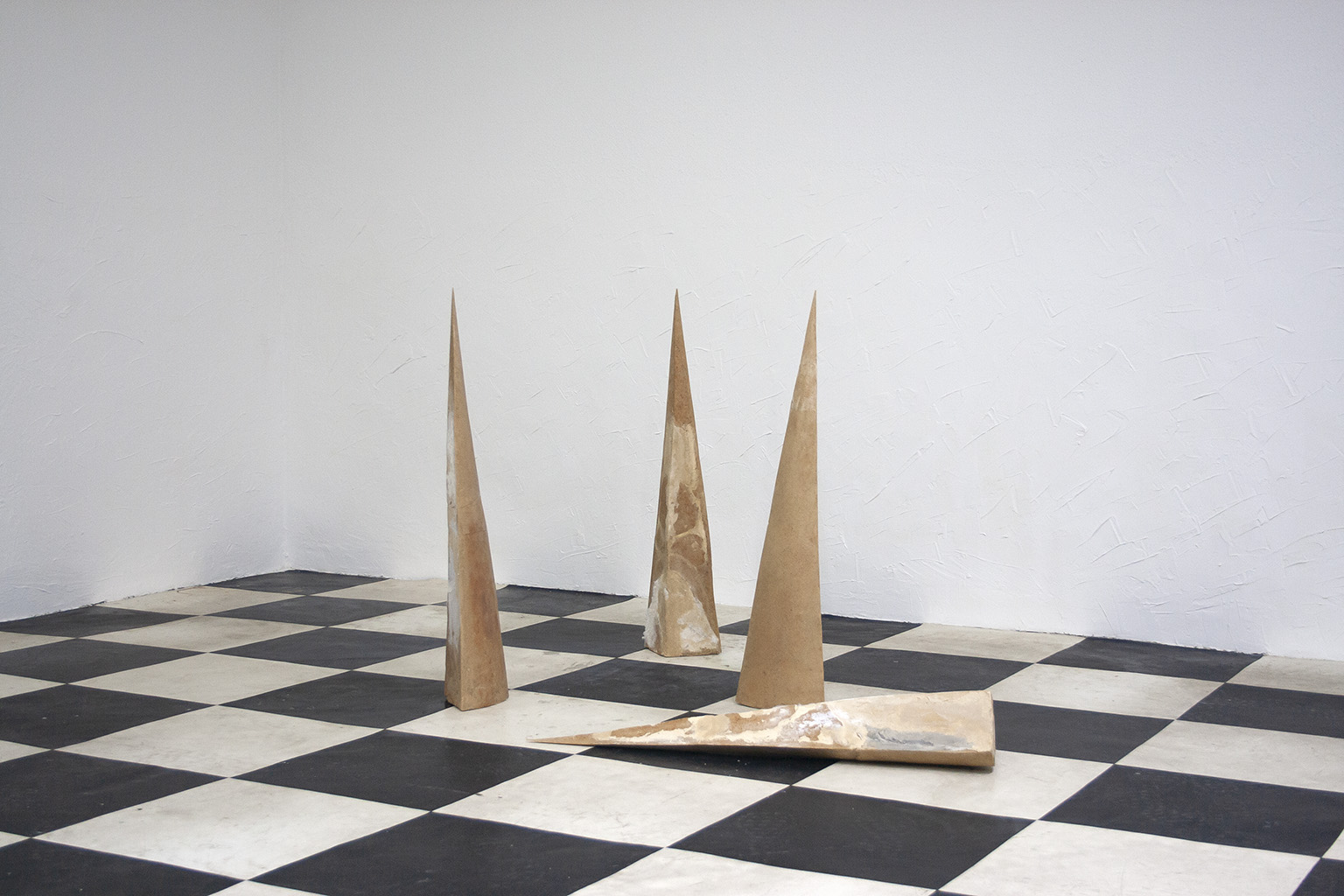 Pieces of Measurement, 2019. silica sand, gypsum, cement, glue, waterproofer, sodium bicarbonate, citric acid, carbon powder, dimensions variable(apprx. 15 × 15 × 89 cm per one piece)
